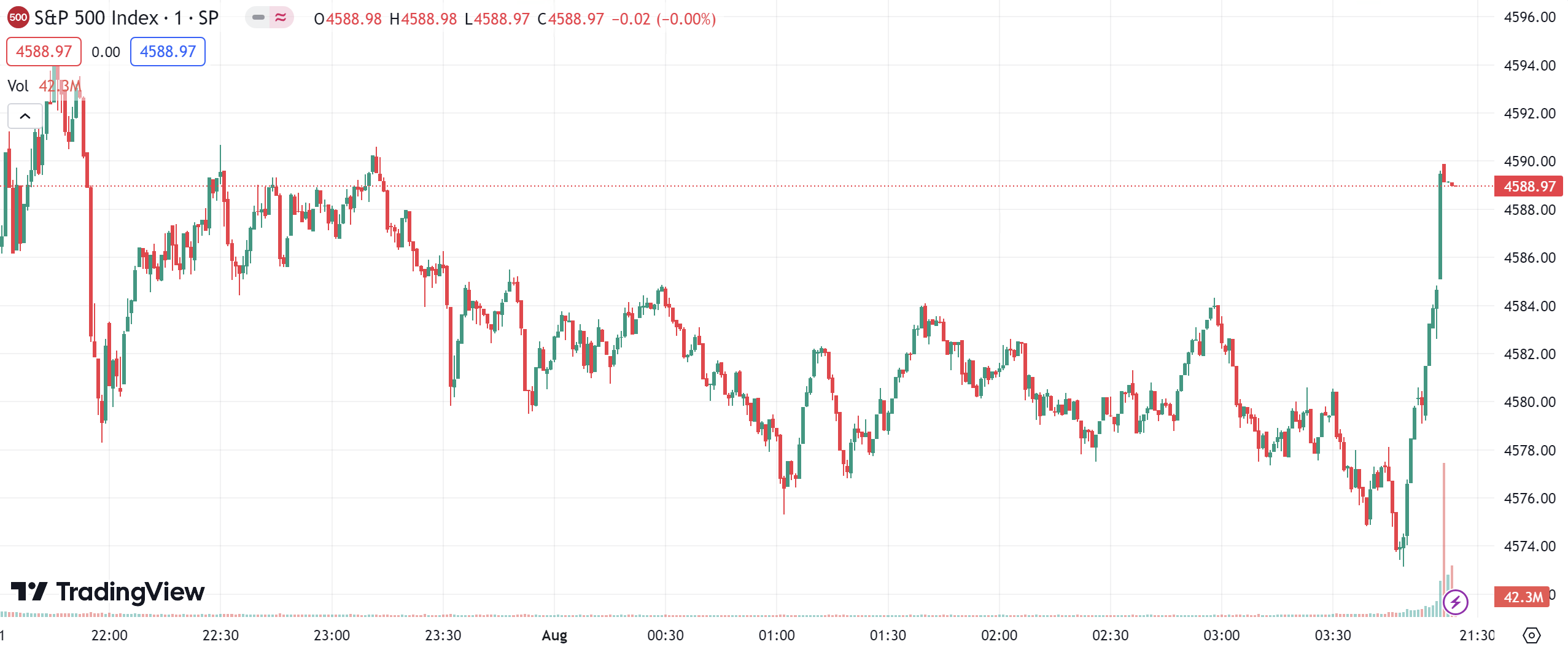 - S&P 500 Index closed higher by 6.73 points, a gain of 0.15%, at 4,588.96 points. It recorded a cumulative increase of 3.11% for July.