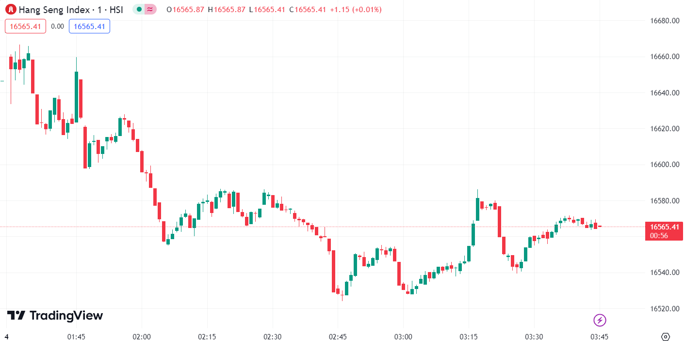 - Hang Seng Index (HSI) dropped by 0.49%, closing at 16,564.79 points.