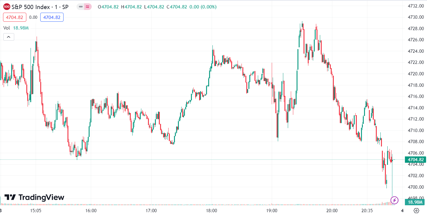 - S&P 500 Index declined by 38.02 points, a 0.80% decrease, closing at 4,704.81 points.