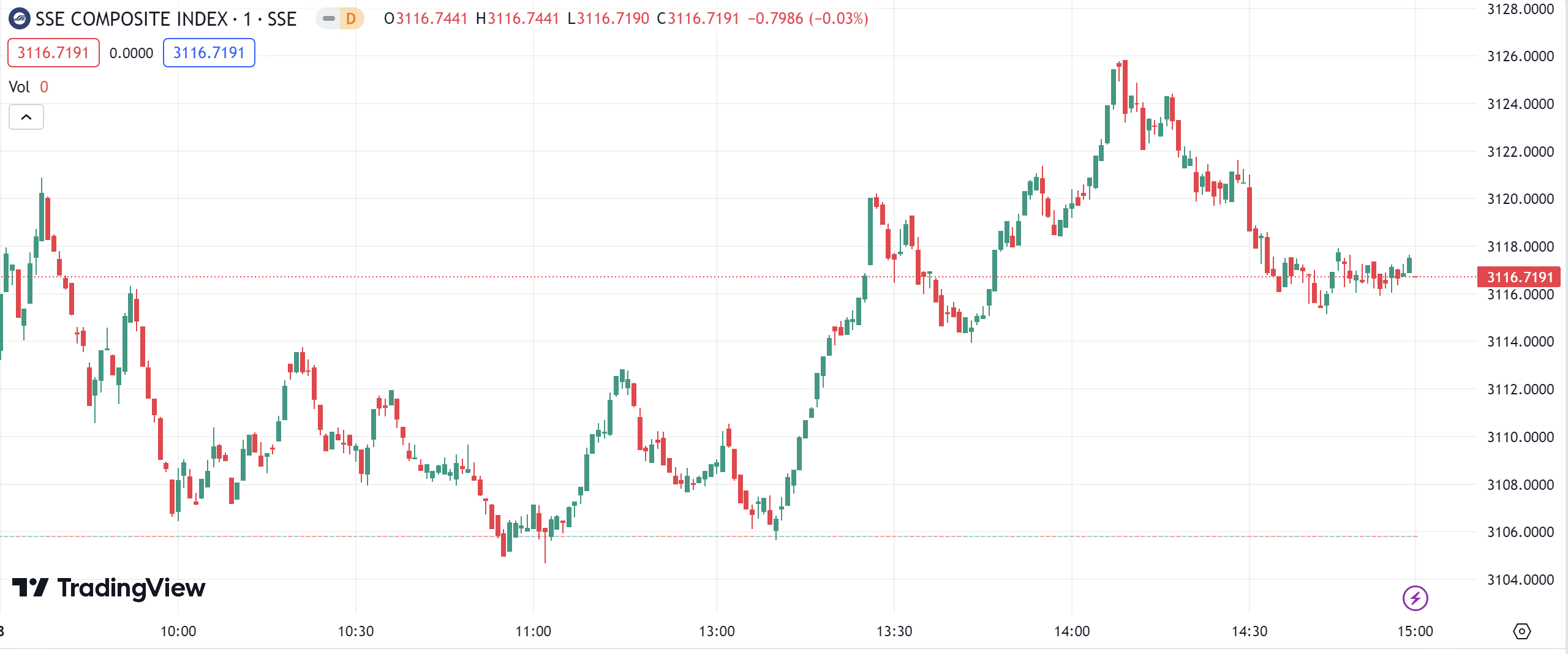 - Shanghai Composite Index (SHCOMP) fell by 0.18%, closing at 3,116.72 points.