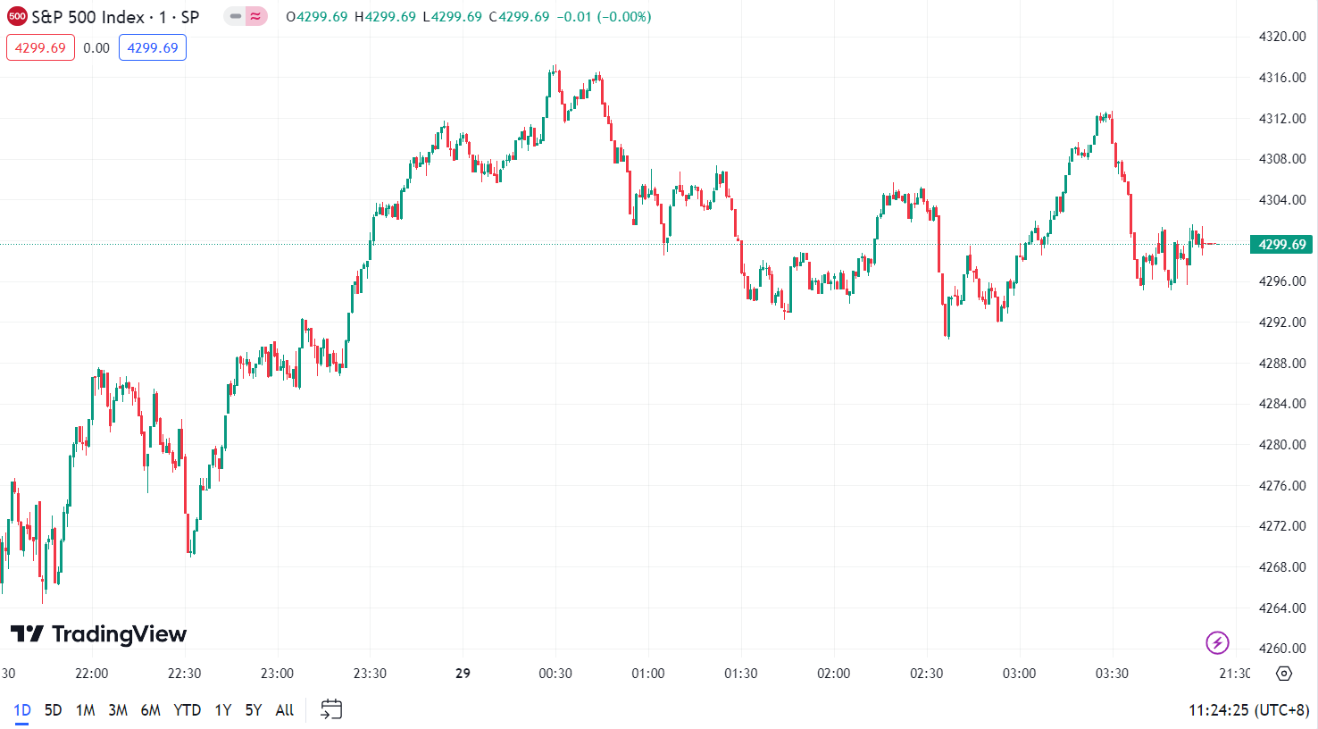 - S&P 500 Index increased by 25.19 points, or 0.59%, closing at 4,299.70 points.