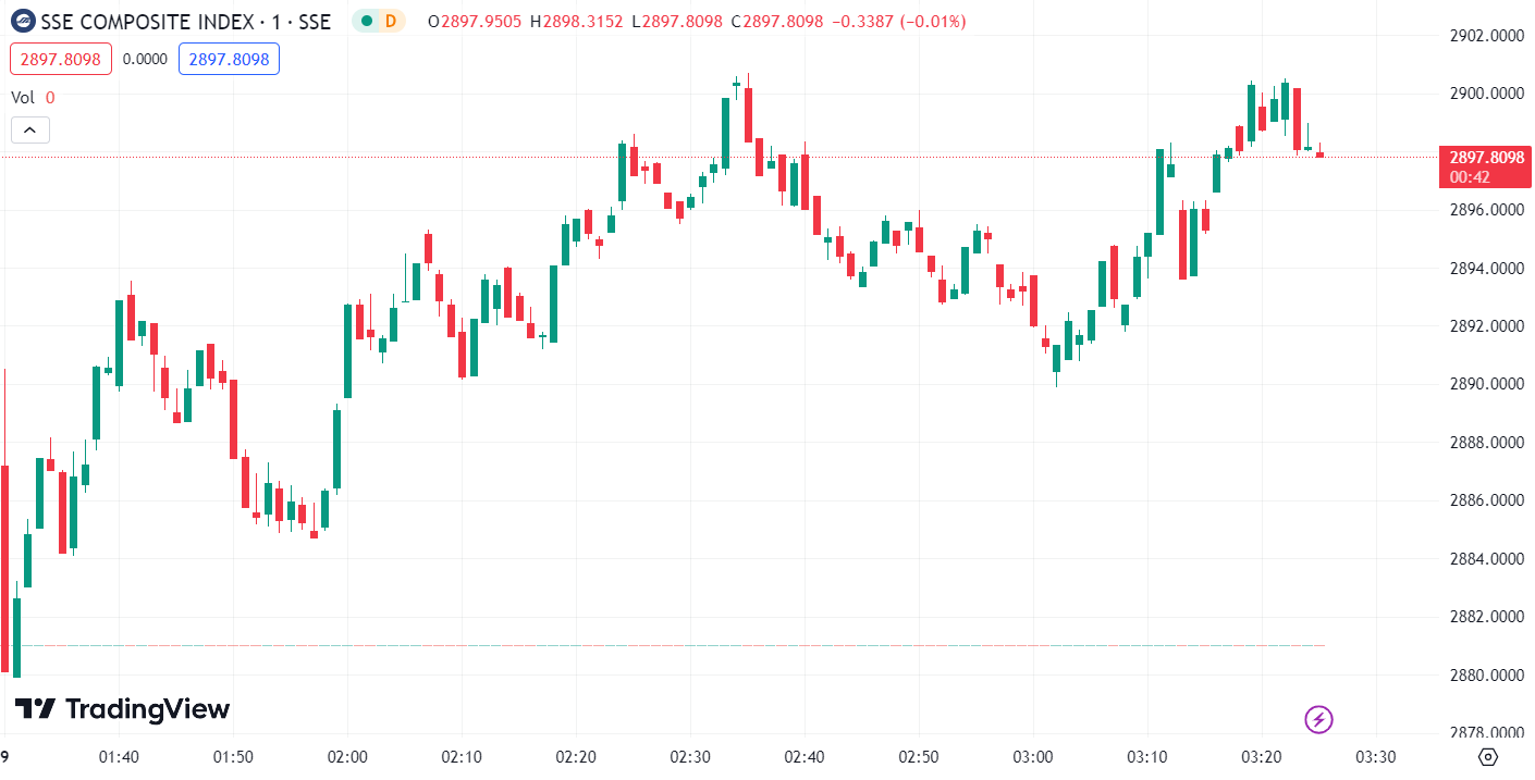 - Shanghai Composite Index (SHCOMP) rose by 0.34%, closing at 2,897.37 points.