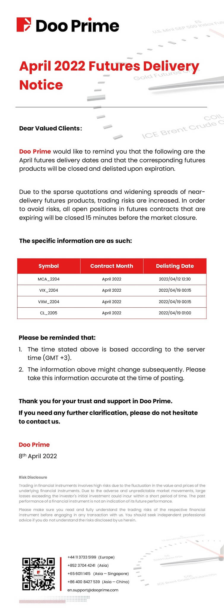 Doo Prime April 2022 Futures Delivery Notice