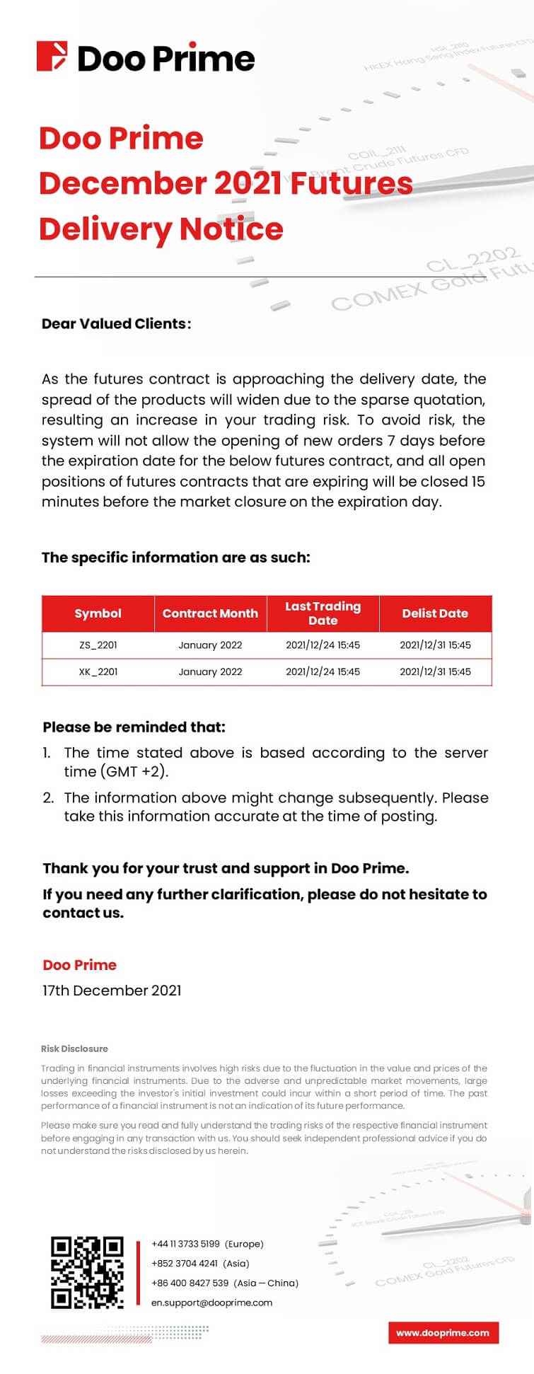 Doo Prime December 2021 Futures Delivery Notice