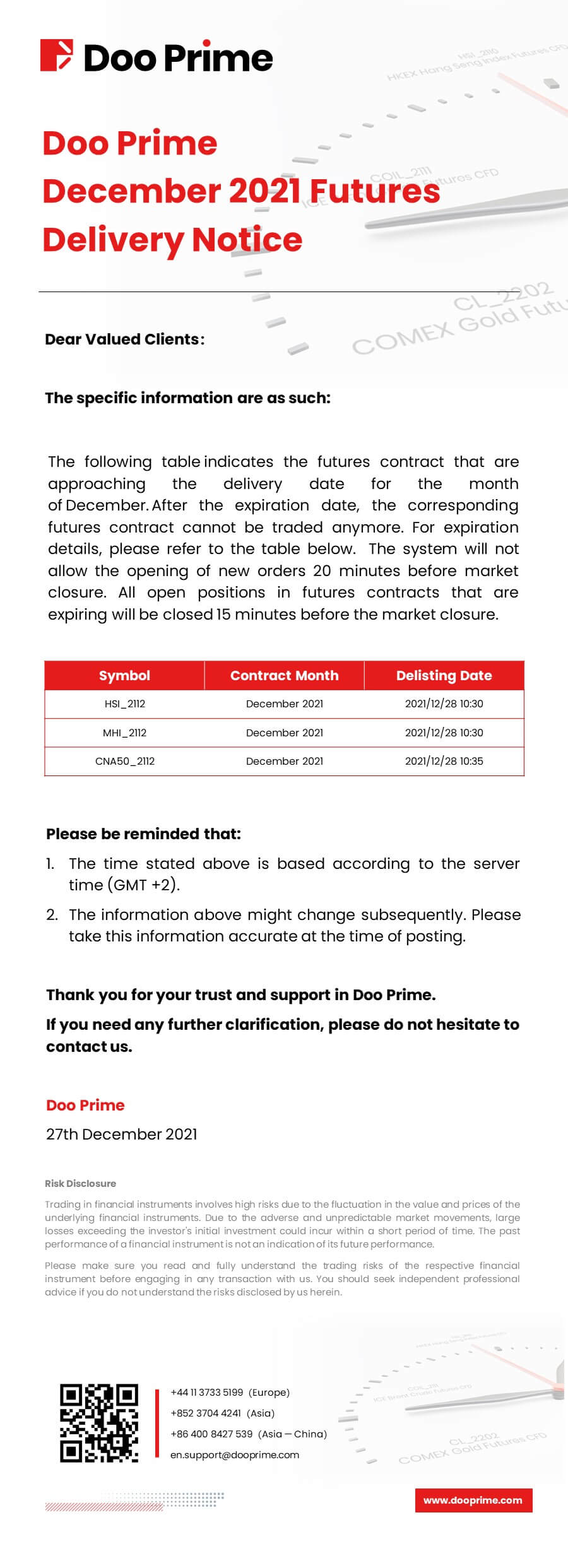 Doo Prime December 2021 Futures Delivery Notice