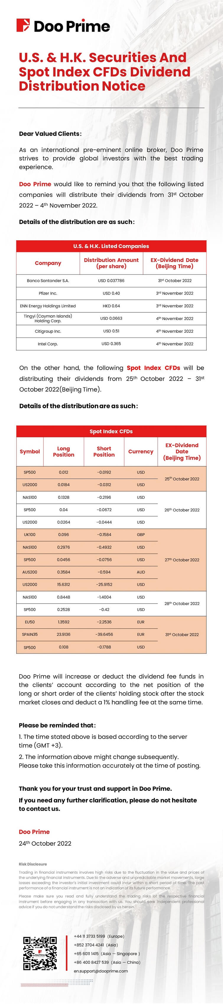 2022-10-24 | Dividend Adjustment Notice , Securities , Spot Index