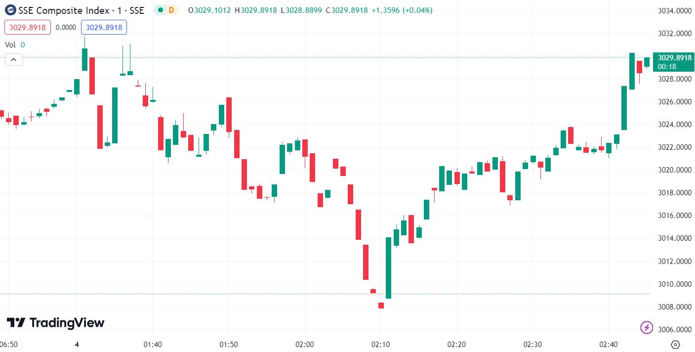 - Shanghai Composite Index (SHCOMP) rose by 0.22%, closing at 3,033.63 points.