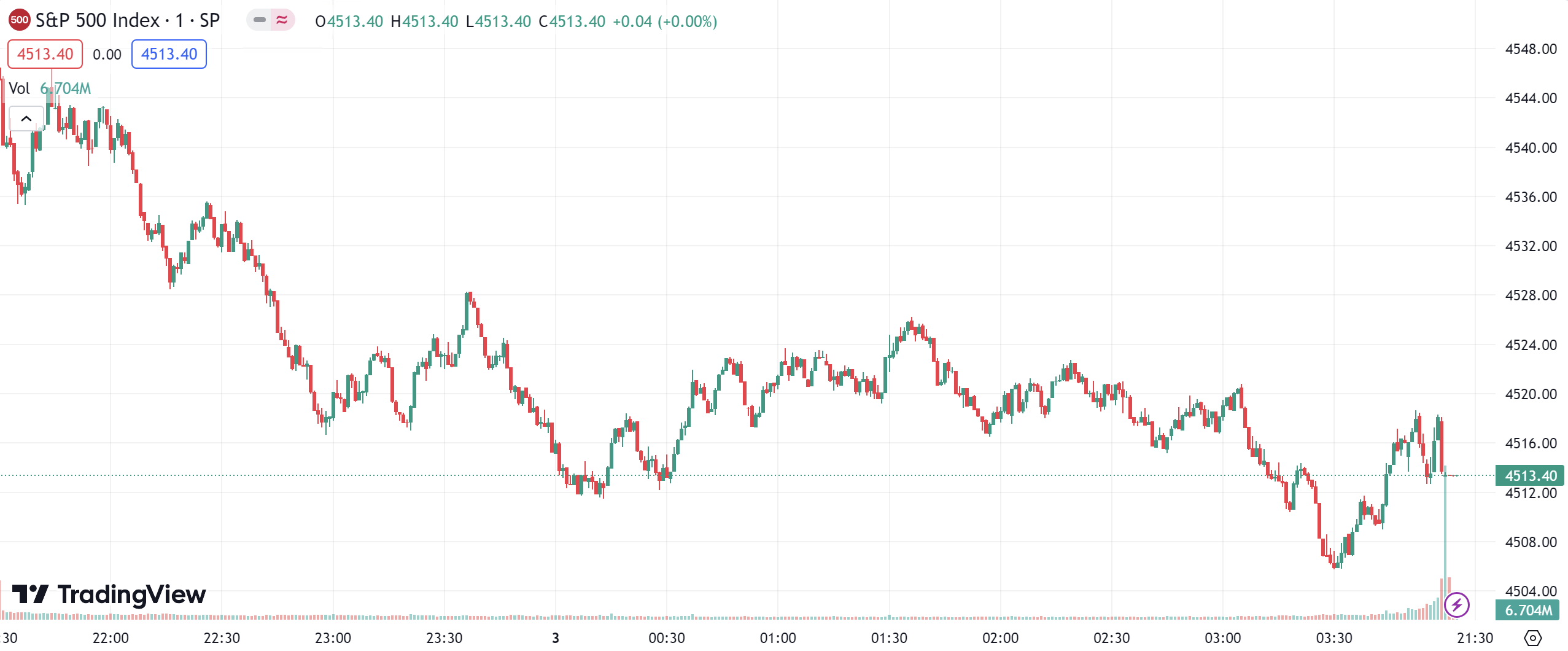 - S&P 500 Index declined 63.36 points, or 1.38%, to close at 4,513.37 points.