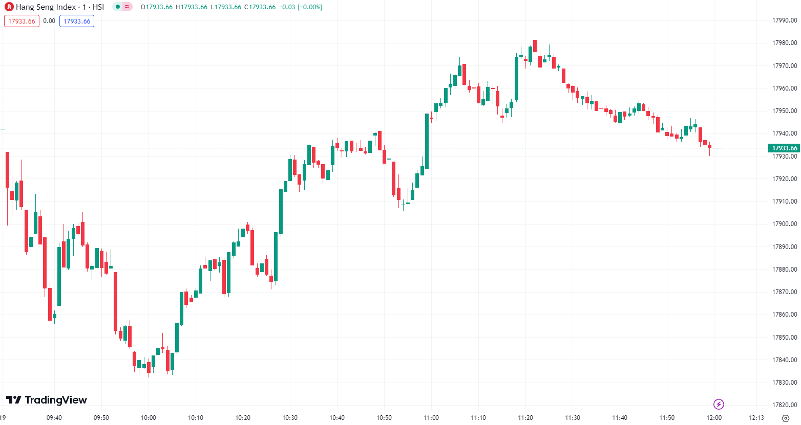 - Hang Seng Index (HSI) increased by 0.02%, closing at 17,933.69.