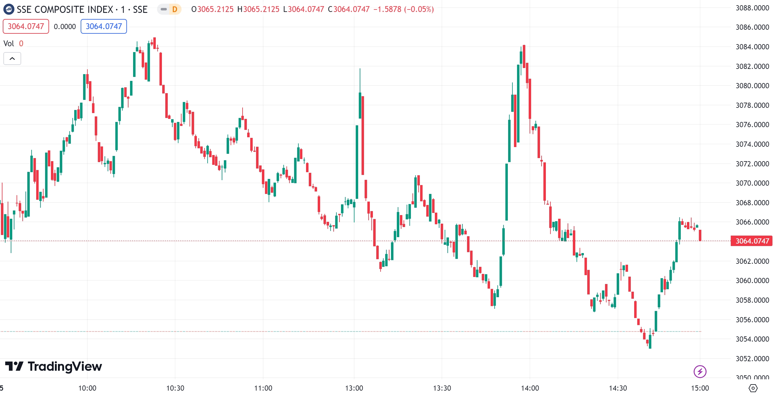 - Shanghai Composite Index (SHCOMP) dropped 0.59%, closing at 3064.07 points.