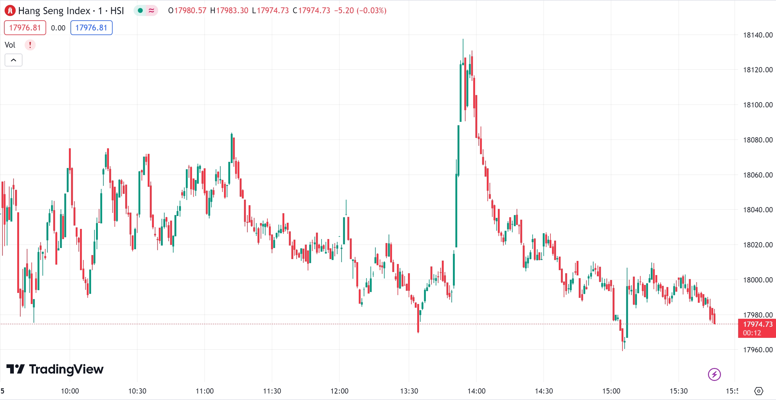- Hang Seng Index (HSI) dropped 1.4%, closing at 17956.38 points.
