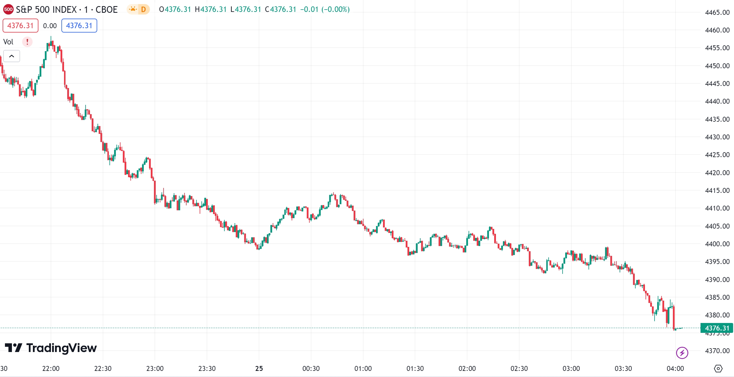 - S&P 500 Index dropped 59.70 points, a decrease of 1.35%, closing at 4376.31 points.