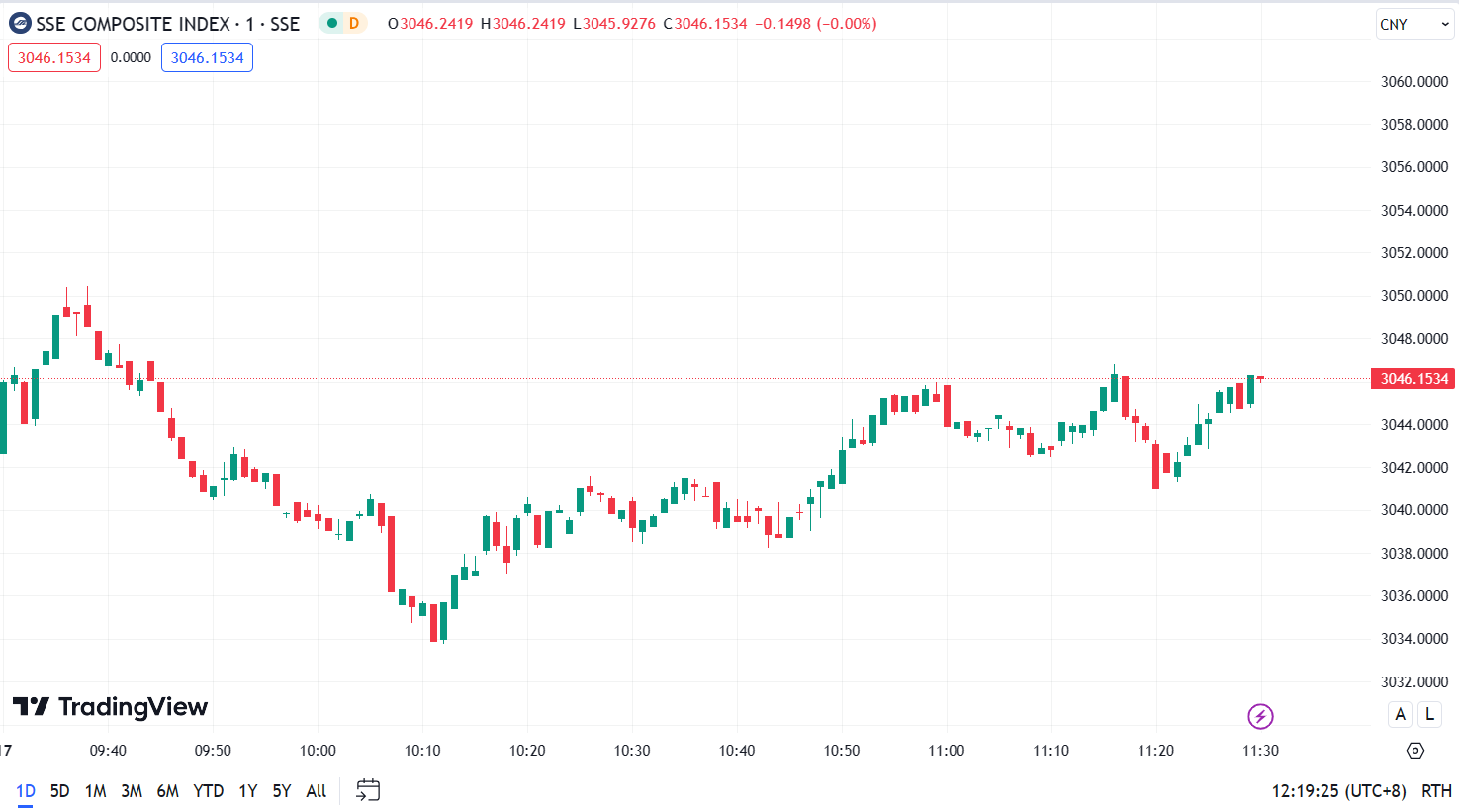 - Shanghai Composite Index (SHCOMP) dropped by 0.16%, closing at 3,046.15 points.
