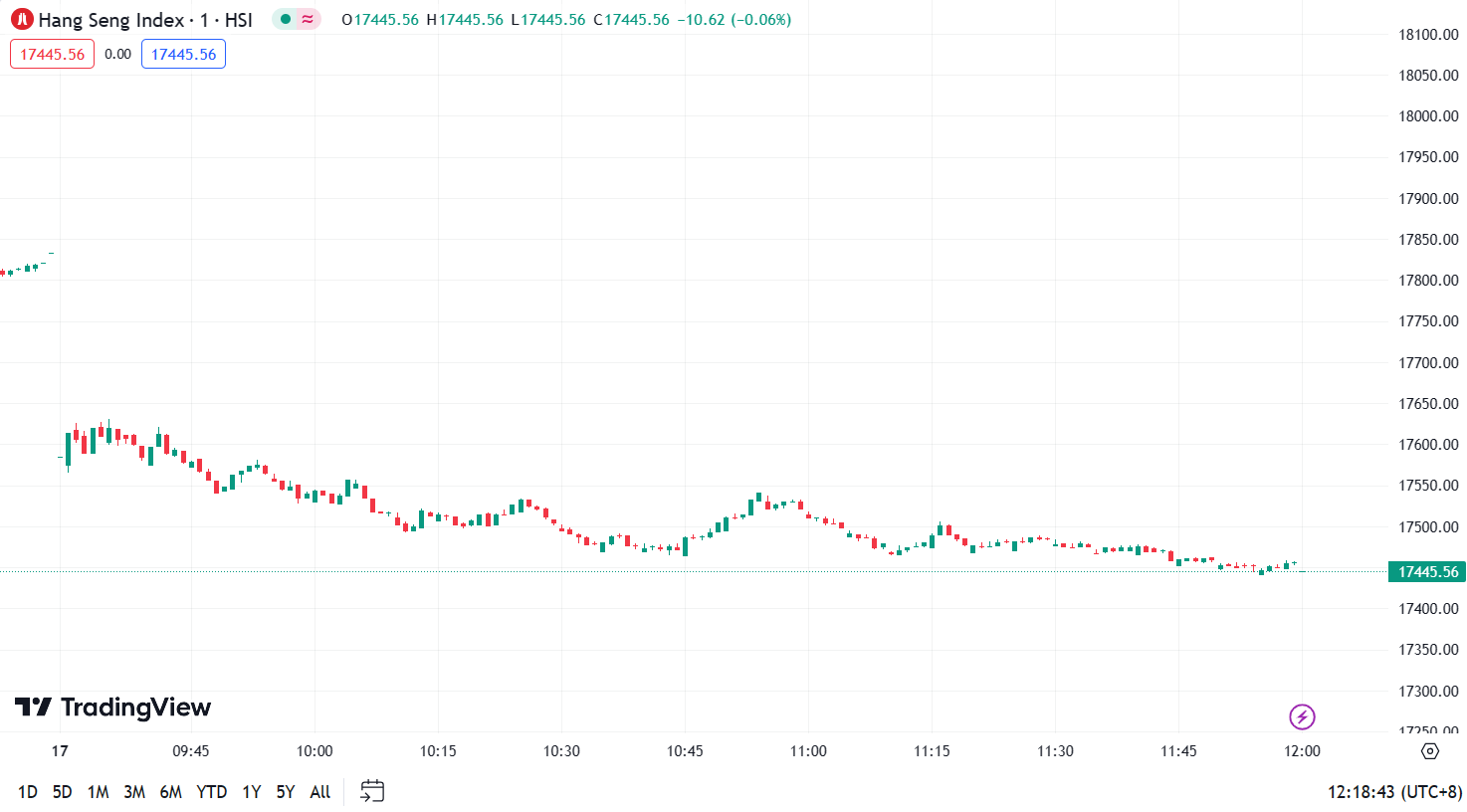 - Hang Seng Index (HSI) dropped by 2.17%, closing at 17,445.56 points.