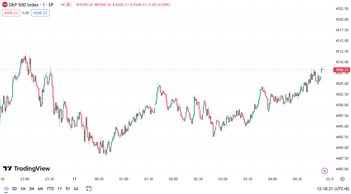 - S&P 500 Index gained 5.36 points, a 0.12% increase, closing at 4,508.24 points.