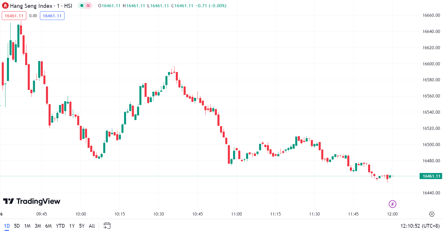 - Hang Seng Index (HSI) dropped by 0.08%, closing at 16,461.11.