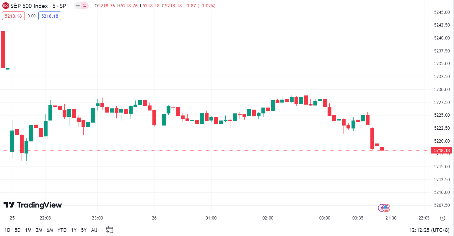 - S&P 500 Index saw a decrease of 15.99 points or 0.31%, closing at 5,218.19.