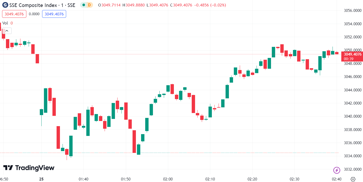 - Shanghai Composite Index (SHCOMP) rose by 0.44%, closing at 3,061.36 points.