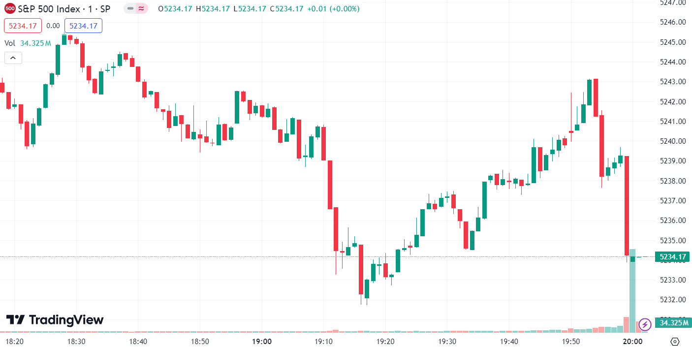 - S&P 500 index fell by 7.35 points, indicating a decline of 0.14%, closing at 5,234.18 points.