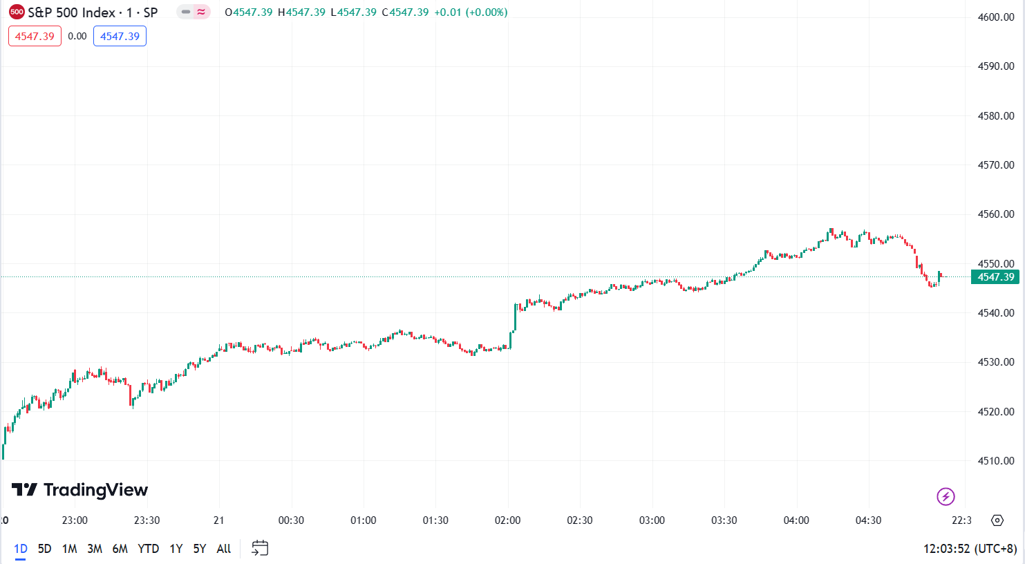 - S&P 500 Index increased by 33.36 points, a 0.74% increase, closing at 4,547.38 points.