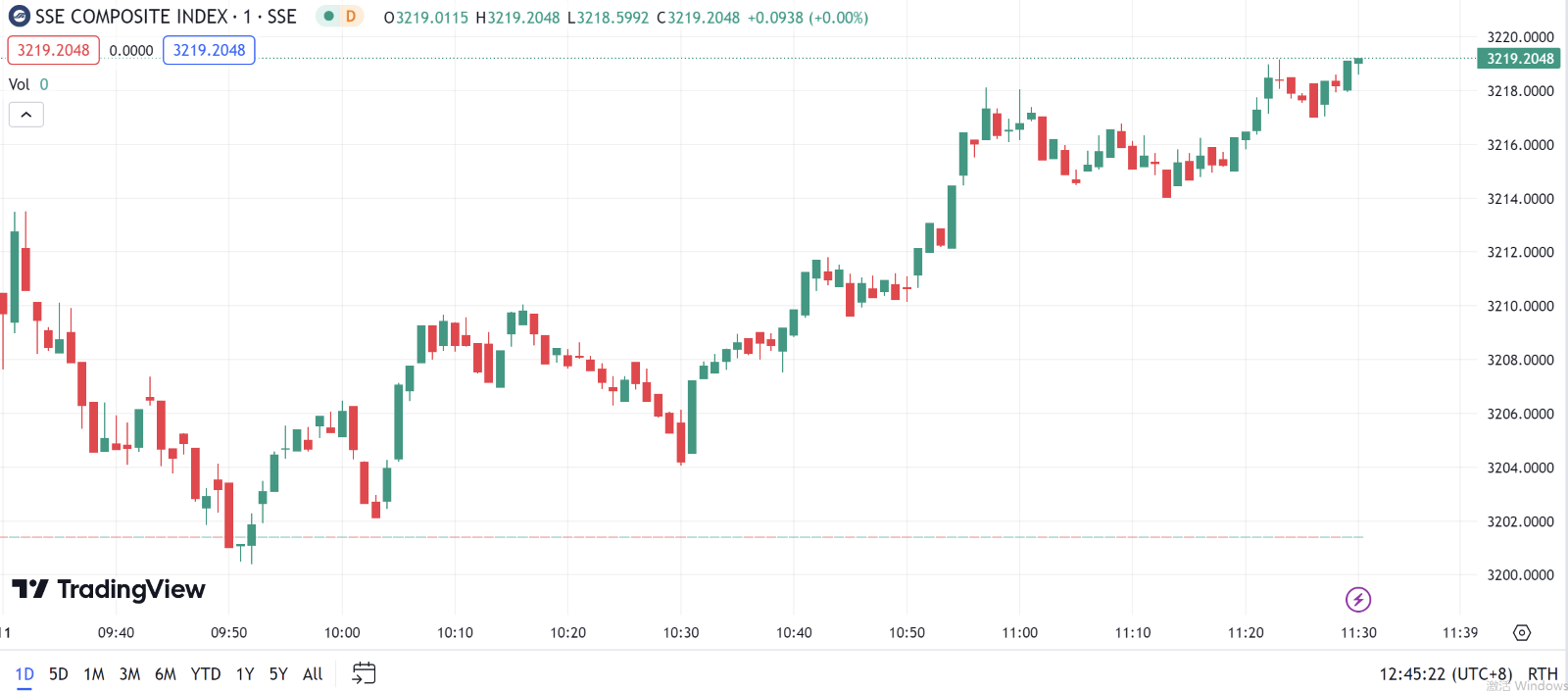 - The Shanghai Composite Index rose by 0.48% to close at 3,219.2 points.