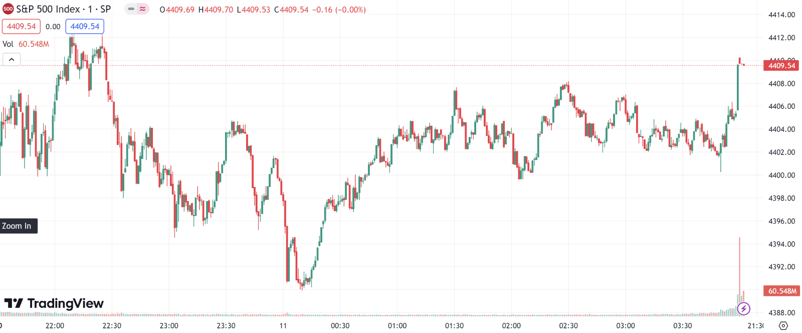 - The S&P 500 index rose by 10.58 points, or 0.24%, to close at 4,409.53 points.