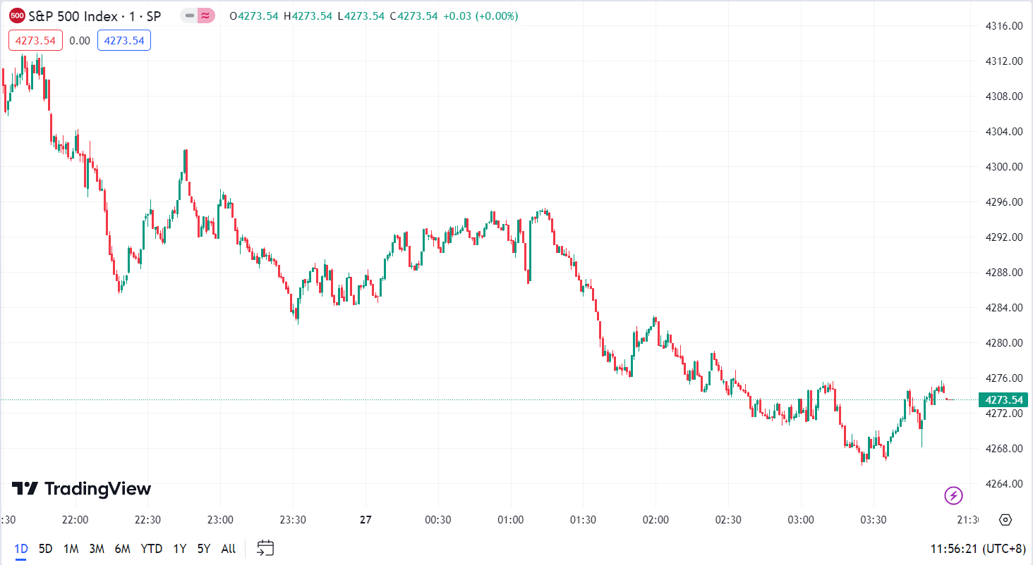 - S&P 500 Index declined by 63.91 points, a decrease of 1.47%, closing at 4,273.53 points.